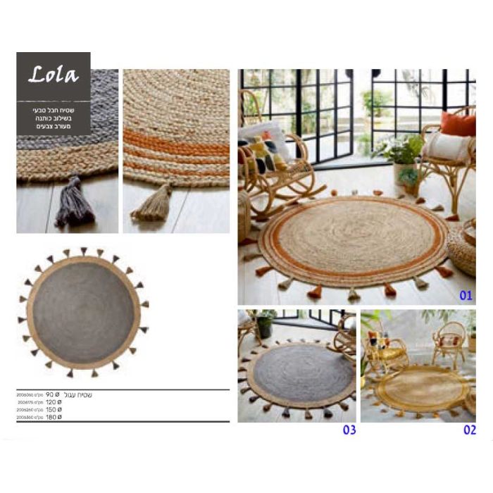 שטיח חבל טבעי עגול עבודת יד בשילוב כותנה דגם לולה
