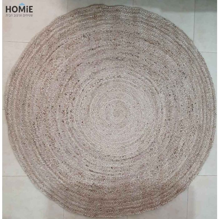 שטיח חבל (יוטה) טבעי עבודת יד עגול כסוף מודרני יוקרתי דגם מרידה 1751 לסלון, לחדר שינה, לחדר ילדים, למסדרון, לאמבטיה, למטבח, לפינת אוכל, לחדר עבודה, לגינה, לגן ילדים, לבית ספר ולמשרד. שטיח החבל הדקורטיבי בקונספט הכפרי נארג בעבודת יד על ידי אמן ויכניס המון סטייל, נוכחות ויוקרה לכל חלל בו הוא נמצא. יתרונו הגדול: יתאים לכל סגנון עיצוב (מודרני, קלאסי ועוד). בנוסף הוא חזק, עבה, עמיד, צפוף, יציב על הקרקע, פרקטי וקל מאוד לניקוי.