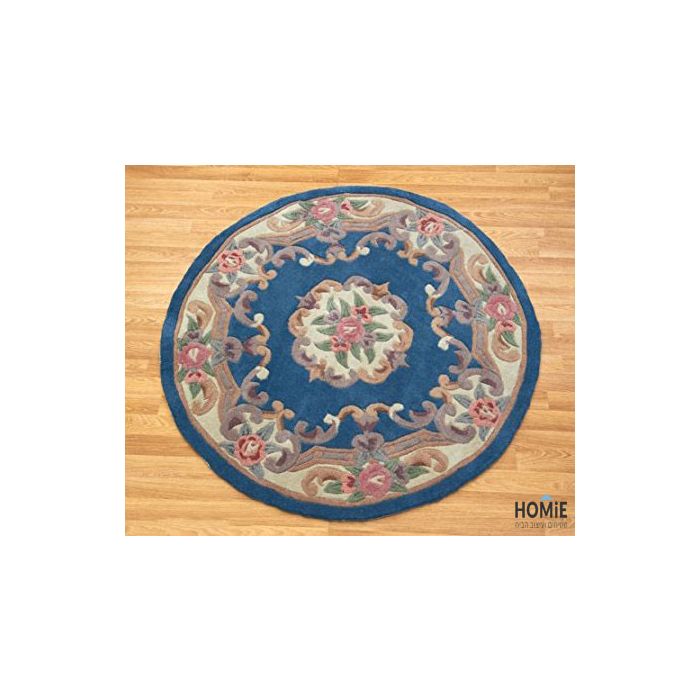 שטיח סיני עגול כחול קלאסי צמר עבודת יד