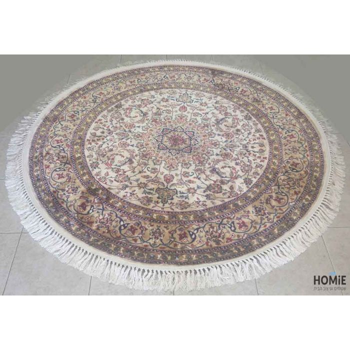שטיח עגול קלאסי ויסקוזה דמוי משי שנהב דגם אספהאן 815
