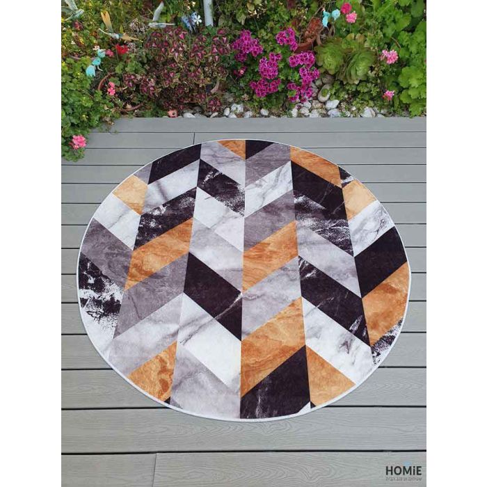 שטיח עגול גיאומטרי אבסטרקטי מודרני איכותי צורות א-סימטריות דגם סנט אטיין בצבע שחור, חרדל ואפור. השטיח יתאים לסלון, חדר שינה, חדר ילדים, אמבטיה, פינת אוכל, מטבח, חדר עבודה ומשרד. השטיח המסוגנן והלא קונבנציונלי בטקסטורת שיש יכניס המון שיק, סטייל ונוכחות לחלל החדר. הניגודיות בין צבעיו המודרניים יוצרת טוויסט מעניין וחדות שיפה לעין. חדי העין ישימו לב לדוגמאות שיש מרשימות הכלואות בתוך הצורות הגיאומטריות. מה שמדהים בו שאם הופכים אותו צבעיו משתנים (ראו תמונות), כך תוכלו לשנות את הצבעים בבית כל אימת שמתחשק לכם. בנוסף השטיח ורסטילי, עמיד, צפוף, נעים למגע, פרקטי וקל מאוד לניקוי.