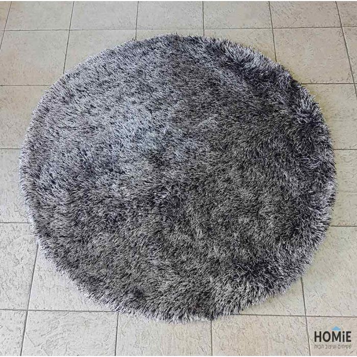 שטיח שאגי משי עגול שחור כסף דגם נרניה