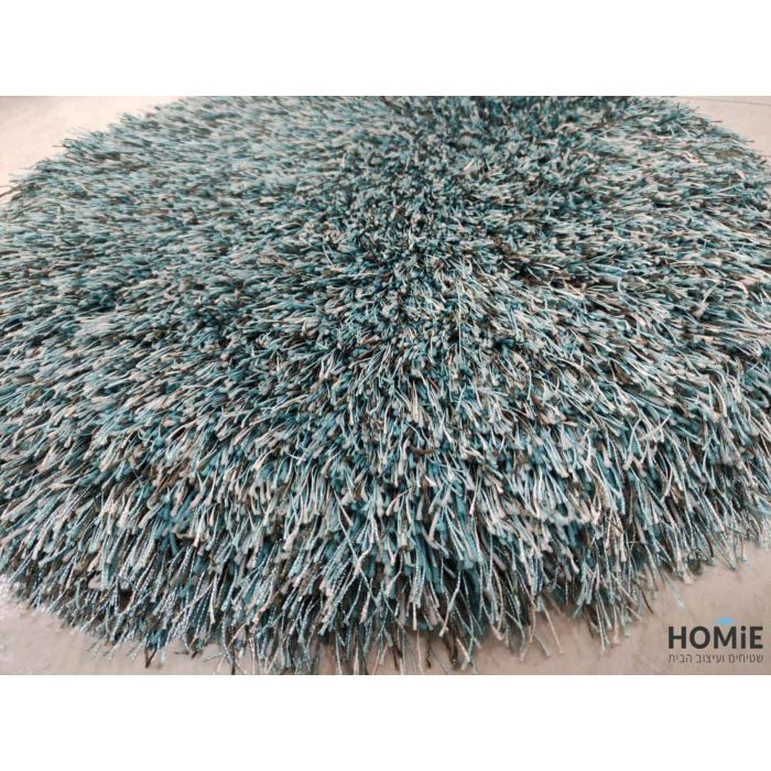 שטיח שאגי משי עגול כחול מרין דגם נרניה