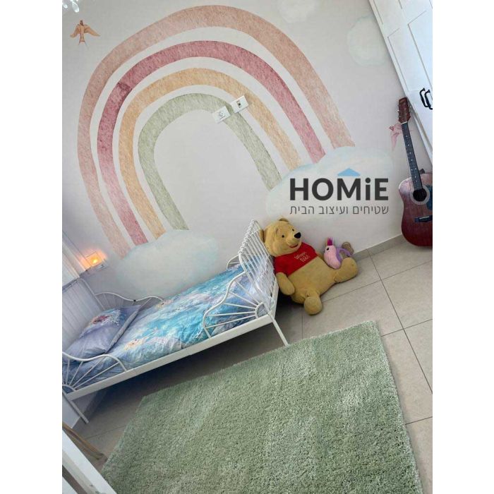 שטיח שאגי ירוק דגם ריינבואו 01. השטיח המודרני היוקרתי יתאים לסלון, חדר ילדים ושאר חלל הבית. השטיח הנפלא מגיע בשתי מידות סטנדרטיות עולמיות מעולות לבחירה. בנוסף השטיח חזק, עמיד, צפוף, נעים למגע, יציב על הקרקע, פרקטי וקל מאוד לניקוי.