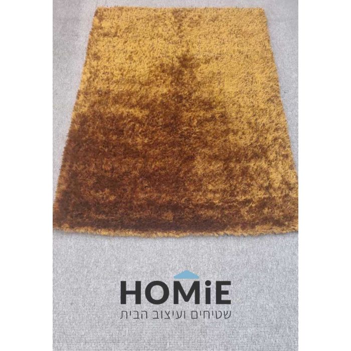 שטיח שאגי משי עבה מודרני כפרי כתום חום עבודת יד דגם נרניה