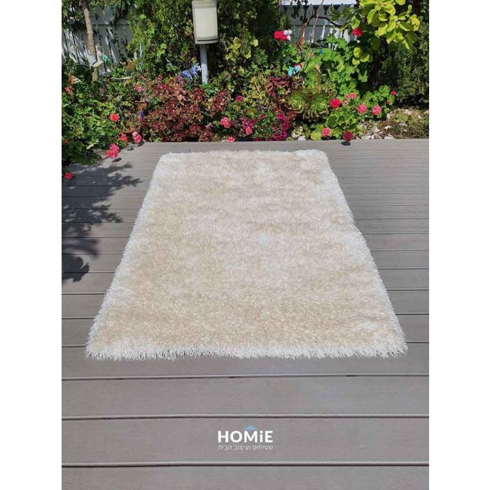 שטיח שאגי משי עבה שמנת דגם נרניה