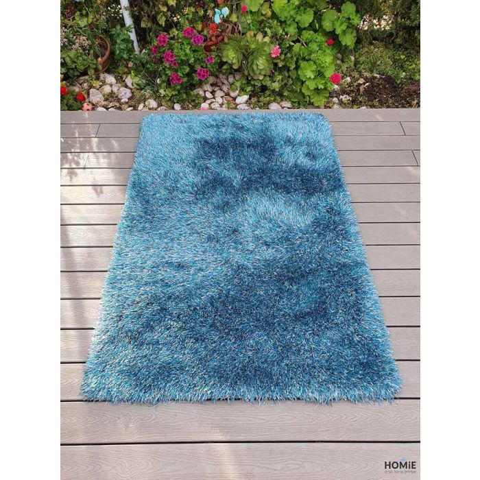 שטיח שאגי משי עבה טורקיז דגם נרניה