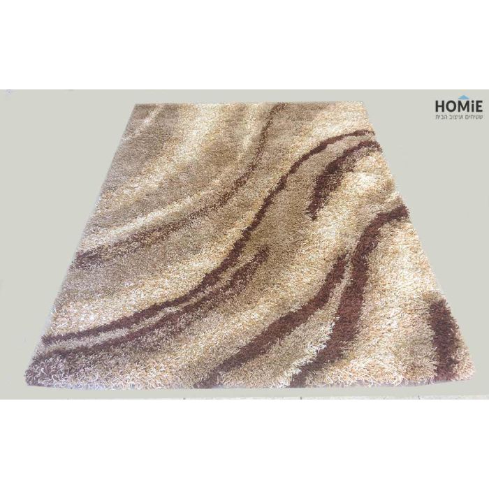 שטיח שאגי גלים אנכיים חום בז' דגם ריינבואו