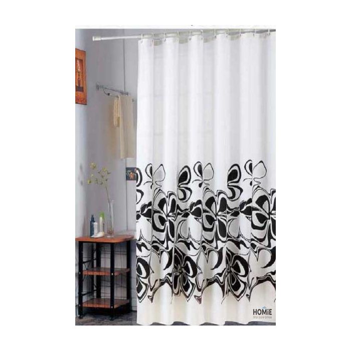 וילון אמבטיה איכותי דגם פרח שחור