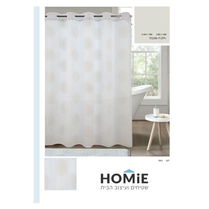 השכבה העליונה הדקורטיבית משדרת תחכום וסטייל, עם עיגולים עדינים וצבעוניות נקייה שמתאימה לכל סגנון עיצובי. השכבה האחורית, המיועדת לשמירה על יובש המקלחת, מספקת הגנה מעולה מפני רטיבות ומאפשרת תחזוקה קלה. השילוב בין השכבות יוצר וילון שגם יפהפה לעין וגם פרקטי לשימוש יומיומי.