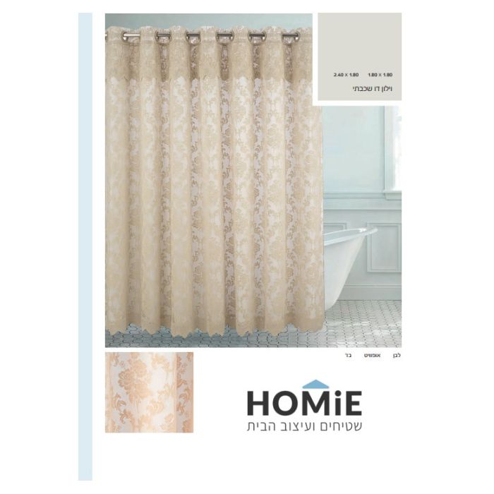 וילון אמבטיה תחרה דו-שכבתי דגם סינטרה המשלב סטייל ופרקטיות לחדר האמבטיה שלכם. השכבה העליונה דקורטיבית עם עיטורי וינטג' קלאסיים עדינים וצבעים נקיים יוצרת מראה אלגנטי ומרשים, בעוד השכבה האחורית עמידה במים ומבטיחה יובש ונוחות שימוש. הוילון היוקרתי מגיע עם כותרת תחרה עדינה ומסוגננת בקצה העליון, המוסיפה אלגנטיות וסטייל ייחודי לחדר האמבטיה. הוילון כולל רינגים לתלייה קלה וניתן לכבס, מספק הפרדה יעילה של אזור המקלחת ושומר על פרטיות, ליצירת אווירה מרעננת ועדינה. זמין בצבעים לבן, אוף וויט ובז', בשתי מידות סטנדרטיות: 180x180 ס"מ ו-180x240 ס"מ, והחבילה כוללת כנף אחת בלבד.