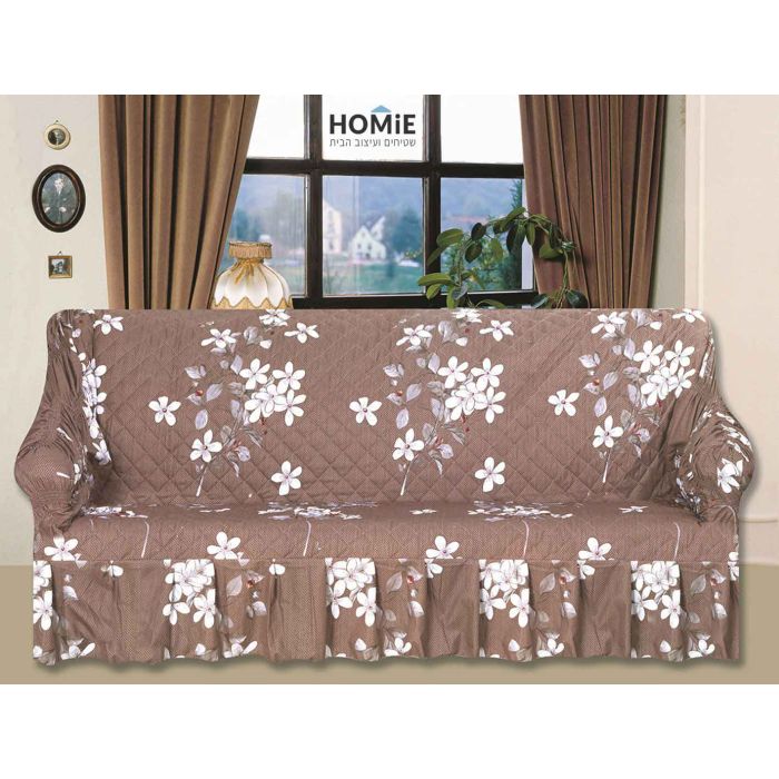 כיסוי סלון חום בד מרופד פרחוני מעויינים דגם אלסנדרה