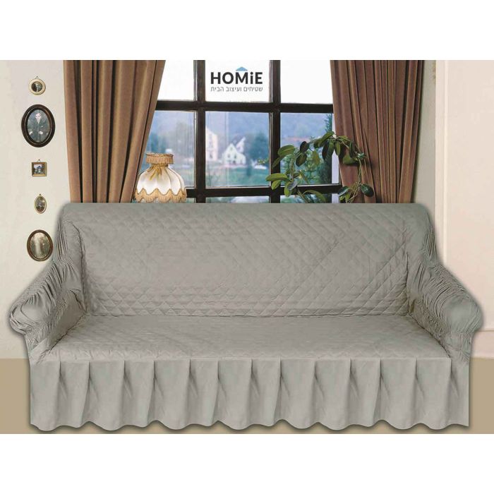כיסוי סלון אפור בד מרופד מעויינים דגם אריאנה