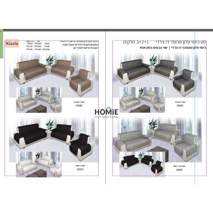 כיסוי סלון דו צדדי מרופד דגם ניקול
