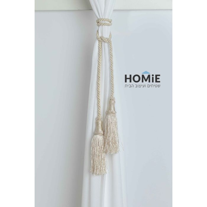 פורטיירה קושרה (חבק) צמה לוילון בצבע שמנת דגם איזבל 02
